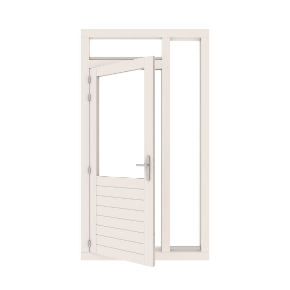 Dit type deurkozijn heeft een zijraam/zijlicht aan de rechterzijde en een bovenraam/bovenlicht. Alle deurkozijnen worden geleverd inclusief deur. Je bepaalt zelf hoe je kozijn en deur er verder uit komen te zien in onze handige bestel-tool. Het kozijn past daardoor in elke woning. Dit type deurkozijn wordt vaak geplaatst als achterdeur. Door de extra ramen creëer je veel licht door heel de ruimte heen. De deur is rondom voorzien van een tochtstrip. Zo wordt geluid en tocht tegengegaan.